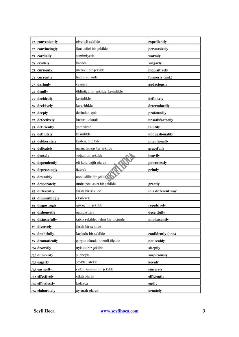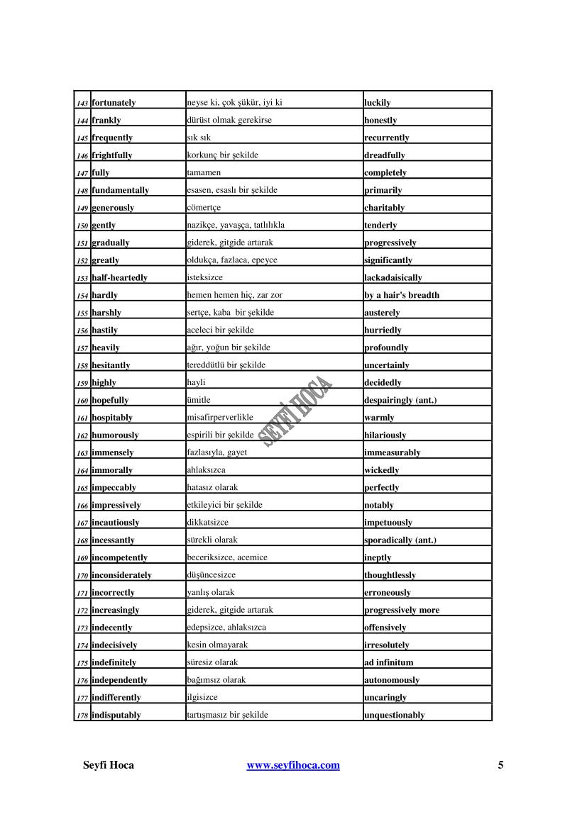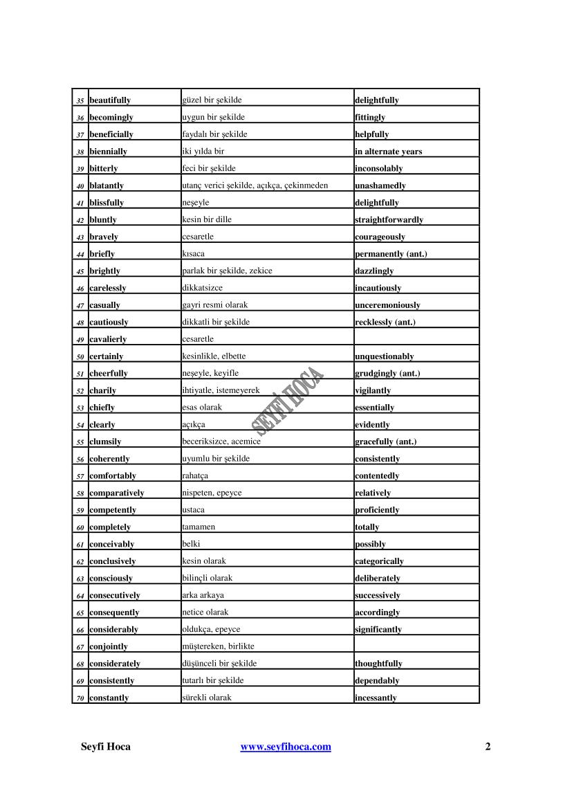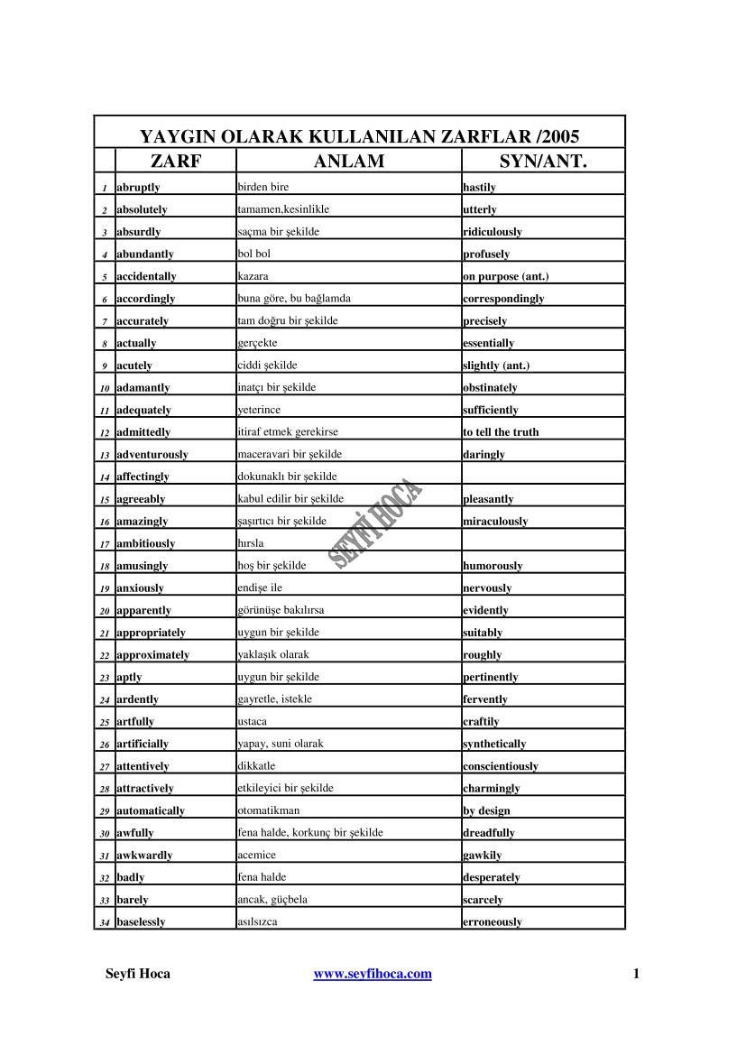 İngilizcede yaygın olarak kullanılan zarflar – Seyfi Hoca
