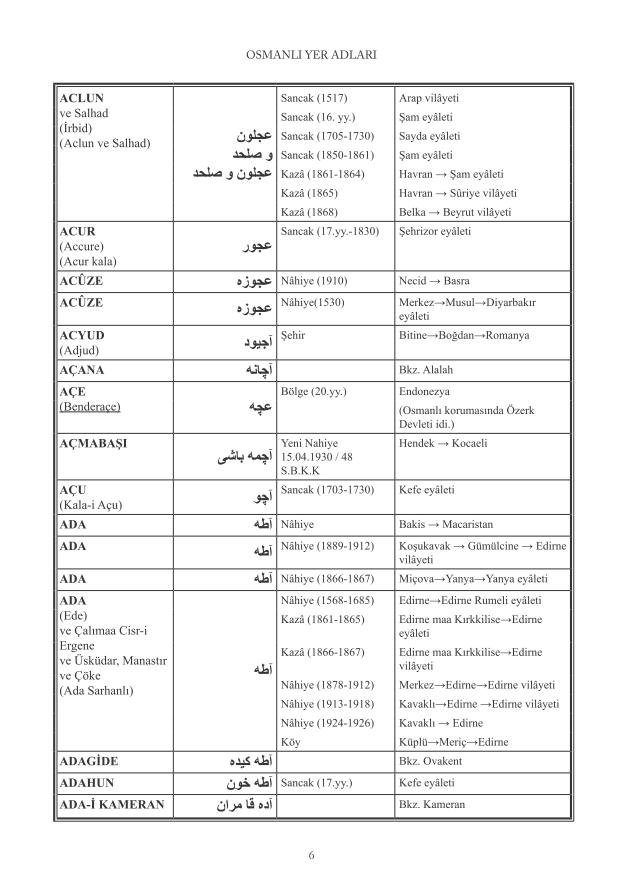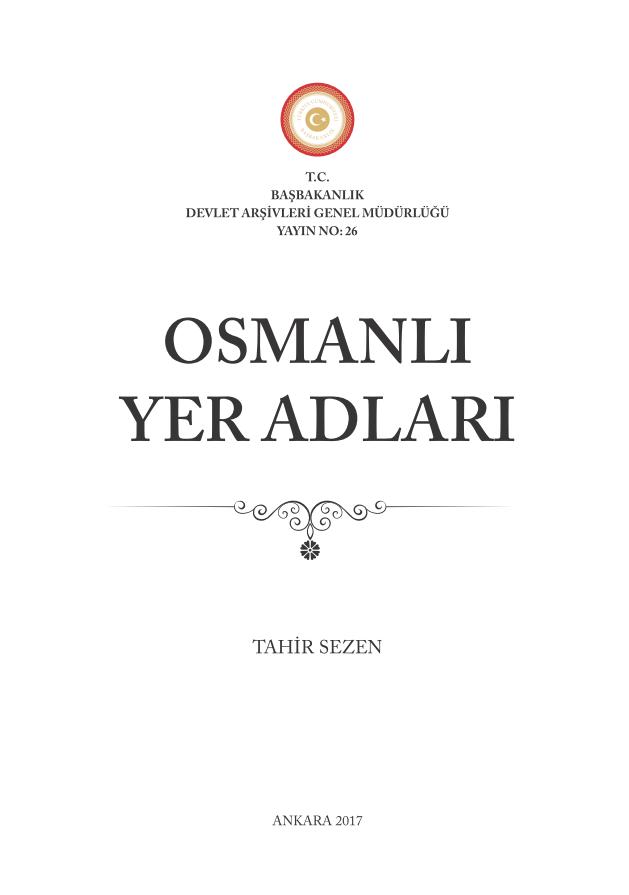 Osmanlı Yer Adları – Devlet Arşivleri Genel Müdürlüğü (Tahir Sezen)